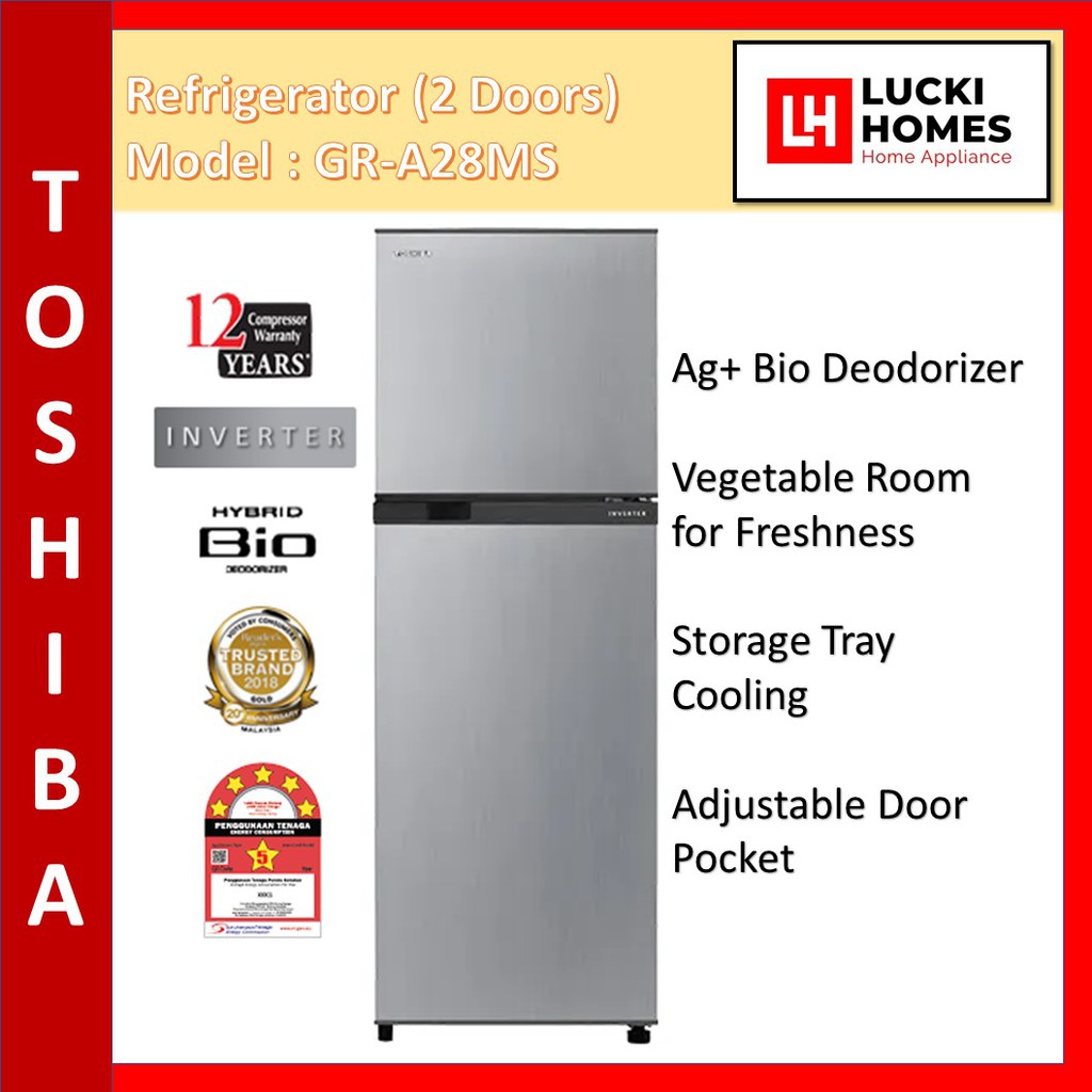 Toshiba 252l 2 Door Inverter Refrigerator Fridge Peti Sejuk Gr A28ms Ds Gr A28mu Uk Gr A28ms S Shopee Malaysia